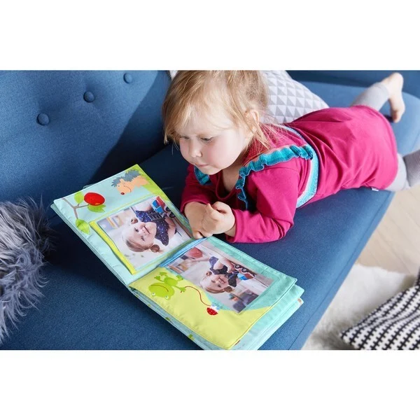 Heerlijk zacht fotoalbum in het thema van kleine diertjes en gelukssymbolen voor het bundelen van de eerste babyfoto's - een prachtig geschenk voor de eerste verjaardag
