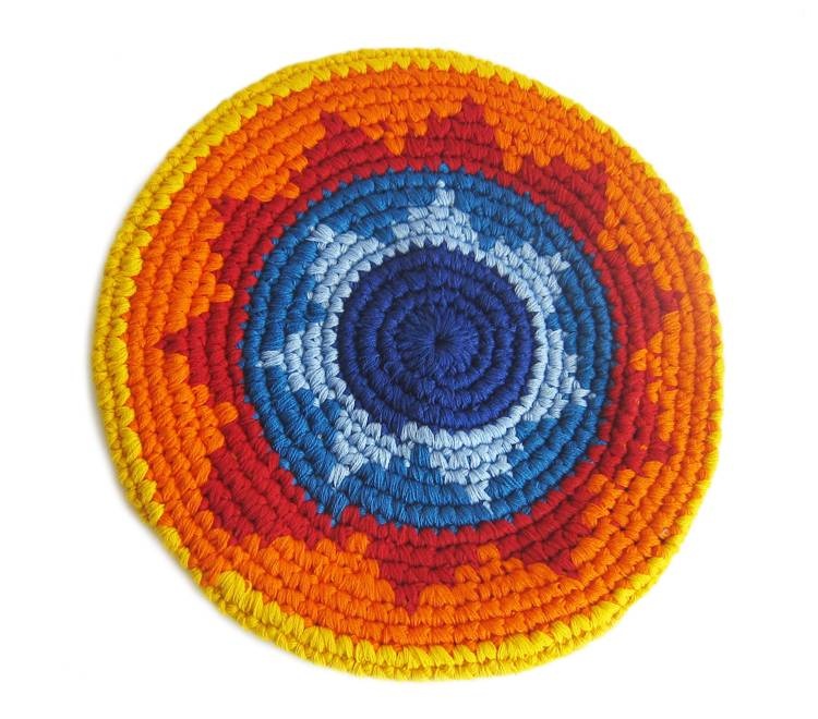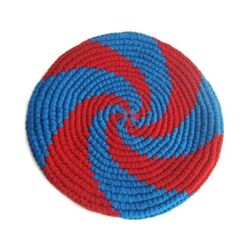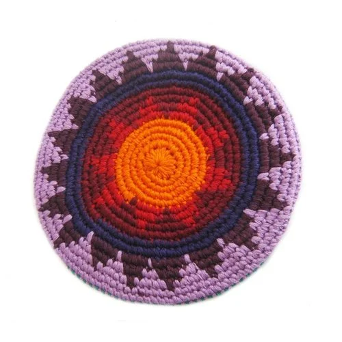 De frisbees zijn met de hand gemaakt door vrouwen uit Guatemala. Fair Trade ook en uniek waardoor de maten (maximaal cm verschil) en patronen verschillen van elkaar. De vrouwen hebben een extra inkomen om in hun primaire levensbehoefte te kunnen voorzien.