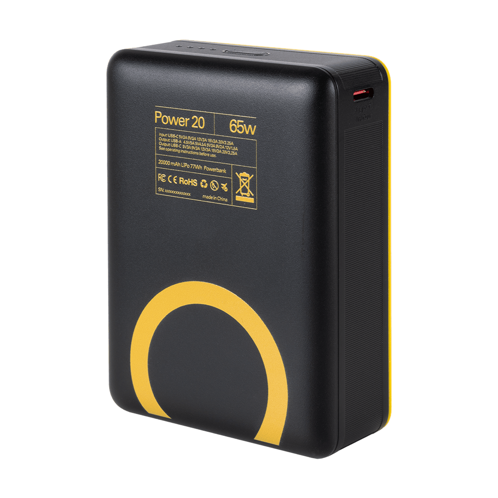 Met een capaciteit van 20.000 mAh is de Power 20 gemaakt voor langere reizen en zwaarder gebruik. Laad je telefoon meerdere keren op, voorzie een tablet of zelfs je computer van stroom. Uitgerust met snel opladen via USB-C en dubbele poorten (USB-A en USB-C) is hij ideaal voor lange reizen, werk op afstand of noodsituaties.